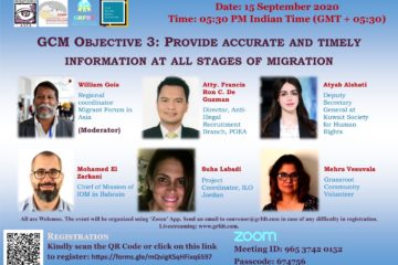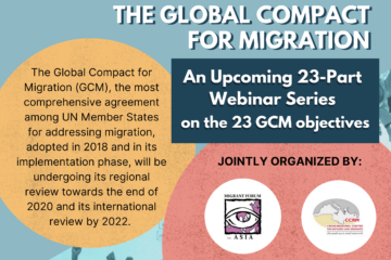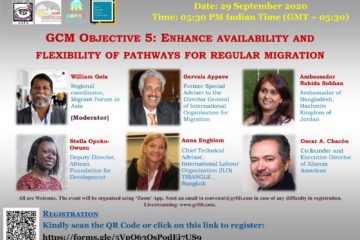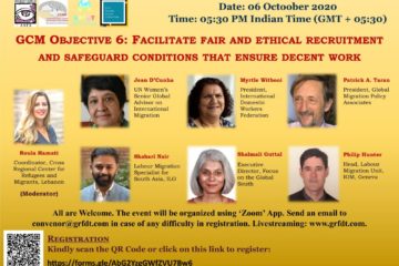 The 6th review discussion on the GCM objectives took place on Tuesday, 6 October 2020. The focus was on GCM Objective 6: “Facilitate Fair and Ethical Recruitment and Safeguard Conditions that Ensure Decent Work” Moderator: Ms. Roula Hamati, Coordinator, Cross Regional Center for Refugees and Migrants, Lebanon Speakers: Jean D’Cunha, UN Women’s Read more