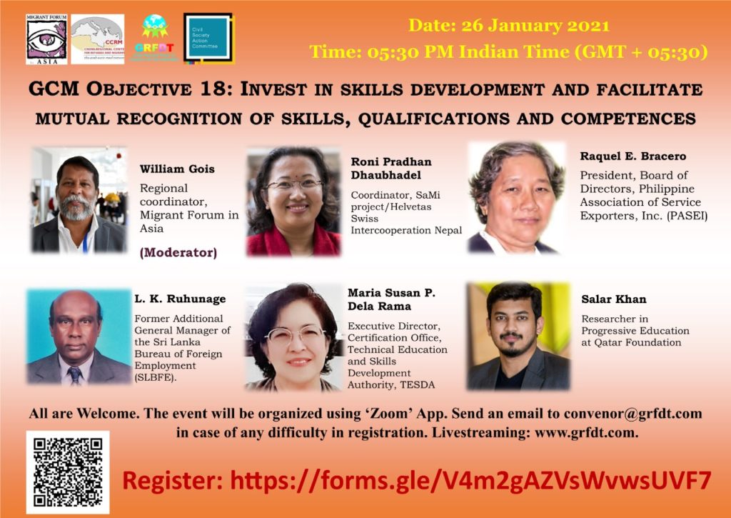 GCM Objective 18: “Invest in skills development and facilitate mutual recognition of skills, qualifications and competences”